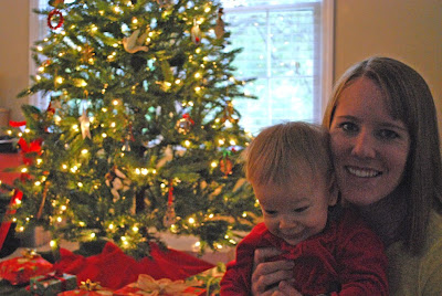 Caden with Aunt Whitney, who wore a special tacky Christmas sweater with bells glued all over it just for his enjoyment :)